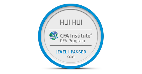 The owner of this badge has passed Level I of the CFA Program. By passing all three of the CFA Program exams and gaining relevant industry experience, candidates demonstrate their mastery of the ethical, analytical, and decision-making skills most needed in the global investment management profession. The CFA credential is the most respected and recognized investment designation in the world with more than 150,000 charterholders globally.