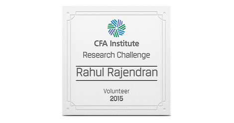 The CFA Institute Research Challenge is an annual global competition that provides university students with hands-on mentoring and intensive training in financial analysis. Students gain real-world experience as they assume the role of a research analyst and are tested on their ability to value a stock, write an initiation-of-coverage report, and present their recommendations.