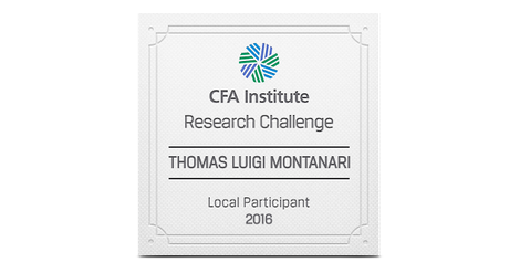 The CFA Institute Research Challenge is an annual global competition that provides university students with hands-on mentoring and intensive training in financial analysis. Students gain real-world experience as they assume the role of a research analyst and are tested on their ability to value a stock, write an initiation-of-coverage report, and present their recommendations.