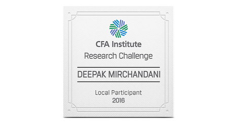 The CFA Institute Research Challenge is an annual global competition that provides university students with hands-on mentoring and intensive training in financial analysis. Students gain real-world experience as they assume the role of a research analyst and are tested on their ability to value a stock, write an initiation-of-coverage report, and present their recommendations.