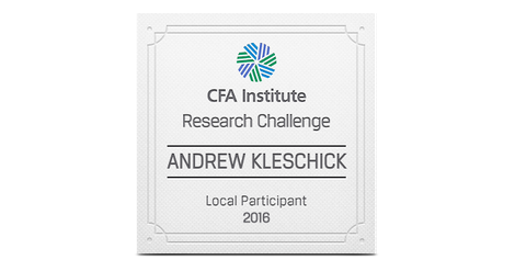 The CFA Institute Research Challenge is an annual global competition that provides university students with hands-on mentoring and intensive training in financial analysis. Students gain real-world experience as they assume the role of a research analyst and are tested on their ability to value a stock, write an initiation-of-coverage report, and present their recommendations.