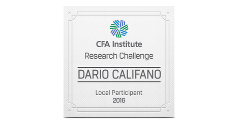The CFA Institute Research Challenge is an annual global competition that provides university students with hands-on mentoring and intensive training in financial analysis. Students gain real-world experience as they assume the role of a research analyst and are tested on their ability to value a stock, write an initiation-of-coverage report, and present their recommendations.