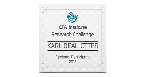 The CFA Institute Research Challenge is an annual global competition that provides university students with hands-on mentoring and intensive training in financial analysis. Students gain real-world experience as they assume the role of a research analyst and are tested on their ability to value a stock, write an initiation-of-coverage report, and present their recommendations.
