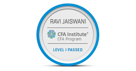 The owner of this badge has passed Level I of the CFA Program. By passing all three of the CFA Program exams and gaining relevant industry experience, candidates demonstrate their mastery of the ethical, analytical, and decision-making skills most needed in the global investment management profession. The CFA credential is the most respected and recognized investment designation in the world with more than 150,000 charterholders globally.