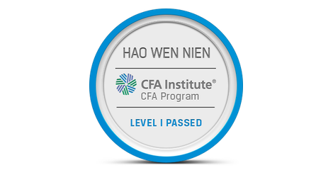 The owner of this badge has passed Level I of the CFA Program. By passing all three of the CFA Program exams and gaining relevant industry experience, candidates demonstrate their mastery of the ethical, analytical, and decision-making skills most needed in the global investment management profession. The CFA credential is the most respected and recognized investment designation in the world with more than 150,000 charterholders globally.