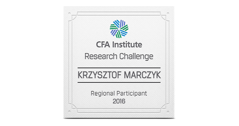 The CFA Institute Research Challenge is an annual global competition that provides university students with hands-on mentoring and intensive training in financial analysis. Students gain real-world experience as they assume the role of a research analyst and are tested on their ability to value a stock, write an initiation-of-coverage report, and present their recommendations.