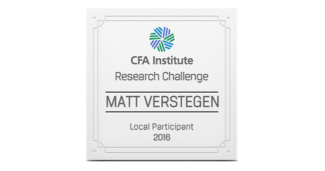 The CFA Institute Research Challenge is an annual global competition that provides university students with hands-on mentoring and intensive training in financial analysis. Students gain real-world experience as they assume the role of a research analyst and are tested on their ability to value a stock, write an initiation-of-coverage report, and present their recommendations.