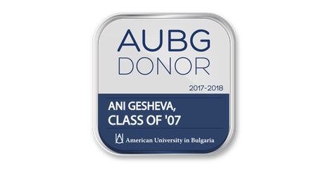 The AUBG Donor badge certifies that its holder has made at least one contribution to AUBG in the period, July 1, 2017- June 30, 2018.