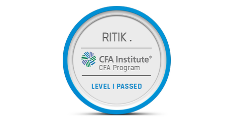 The owner of this badge has passed Level I of the CFA Program. By passing all three of the CFA Program exams and gaining relevant industry experience, candidates demonstrate their mastery of the ethical, analytical, and decision-making skills most needed in the global investment management profession. The CFA credential is the most respected and recognized investment designation in the world with more than 150,000 charterholders globally.