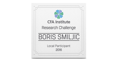 The CFA Institute Research Challenge is an annual global competition that provides university students with hands-on mentoring and intensive training in financial analysis. Students gain real-world experience as they assume the role of a research analyst and are tested on their ability to value a stock, write an initiation-of-coverage report, and present their recommendations.