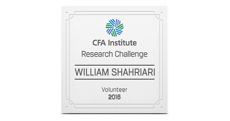 The CFA Institute Research Challenge is an annual global competition that provides university students with hands-on mentoring and intensive training in financial analysis. Students gain real-world experience as they assume the role of a research analyst and are tested on their ability to value a stock, write an initiation-of-coverage report, and present their recommendations.