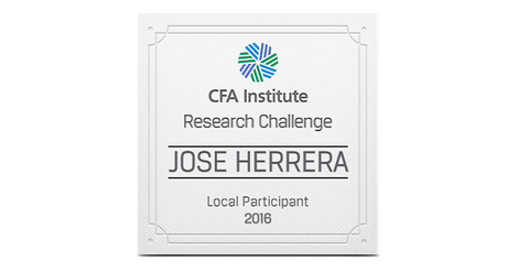 The CFA Institute Research Challenge is an annual global competition that provides university students with hands-on mentoring and intensive training in financial analysis. Students gain real-world experience as they assume the role of a research analyst and are tested on their ability to value a stock, write an initiation-of-coverage report, and present their recommendations.