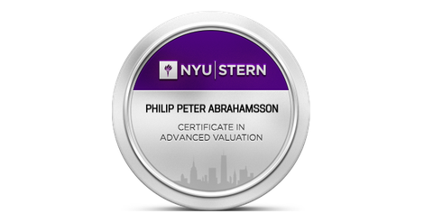 The NYU Stern Certificate in Valuation teaches students how to understand and apply the core fundamentals of valuation whether it’s preparing for an imminent merger or acquisition, or marveling over the latest dollar figure attached to a tech wunderkind. The Valuation course unfolds over 15 weeks, with two new topics released each week. Roughly every other week, Professor Damodaran will hold a live online Q&A session for all participants in the course. Students will complete three quizzes, a final valuation project, and a final exam. Successful completion of the course results in an NYU Stern Certificate in Advanced Valuation.