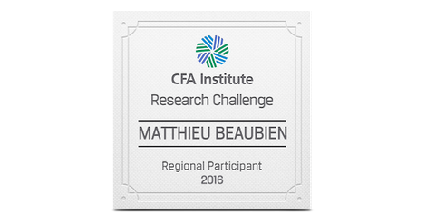 The CFA Institute Research Challenge is an annual global competition that provides university students with hands-on mentoring and intensive training in financial analysis. Students gain real-world experience as they assume the role of a research analyst and are tested on their ability to value a stock, write an initiation-of-coverage report, and present their recommendations.
