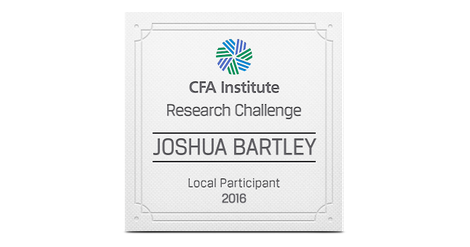 The CFA Institute Research Challenge is an annual global competition that provides university students with hands-on mentoring and intensive training in financial analysis. Students gain real-world experience as they assume the role of a research analyst and are tested on their ability to value a stock, write an initiation-of-coverage report, and present their recommendations.