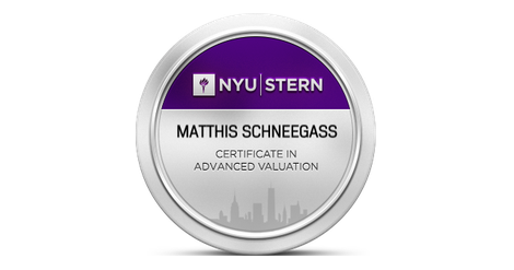 The NYU Stern Certificate in Valuation teaches students how to understand and apply the core fundamentals of valuation whether it’s preparing for an imminent merger or acquisition, or marveling over the latest dollar figure attached to a tech wunderkind. The Valuation course unfolds over 15 weeks, with two new topics released each week. Roughly every other week, Professor Damodaran will hold a live online Q&A session for all participants in the course. Students will complete three quizzes, a final valuation project, and a final exam. Successful completion of the course results in an NYU Stern Certificate in Advanced Valuation.