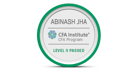 The owner of this badge has passed Level II of the CFA Program. By passing all three of the CFA Program exams and gaining relevant industry experience, candidates demonstrate their mastery of the ethical, analytical, and decision-making skills most needed in the global investment management profession. The CFA credential is the most respected and recognized investment designation in the world with more than 150,000 charterholders globally.