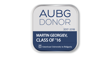 The AUBG Donor badge certifies that its holder has made at least one contribution to AUBG in the period, July 1, 2017- June 30, 2018.