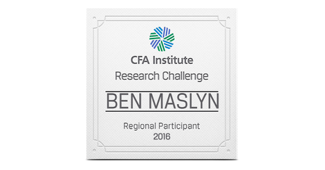 The CFA Institute Research Challenge is an annual global competition that provides university students with hands-on mentoring and intensive training in financial analysis. Students gain real-world experience as they assume the role of a research analyst and are tested on their ability to value a stock, write an initiation-of-coverage report, and present their recommendations.