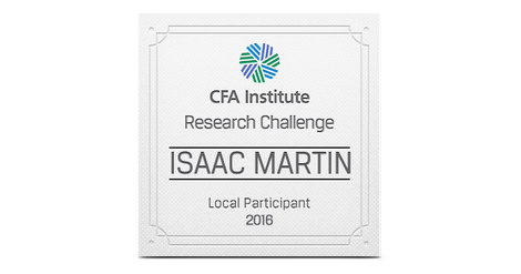 The CFA Institute Research Challenge is an annual global competition that provides university students with hands-on mentoring and intensive training in financial analysis. Students gain real-world experience as they assume the role of a research analyst and are tested on their ability to value a stock, write an initiation-of-coverage report, and present their recommendations.