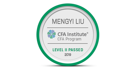The owner of this badge has passed Level II of the CFA Program. By passing all three of the CFA Program exams and gaining relevant industry experience, candidates demonstrate their mastery of the ethical, analytical, and decision-making skills most needed in the global investment management profession. The CFA credential is the most respected and recognized investment designation in the world with more than 150,000 charterholders globally.