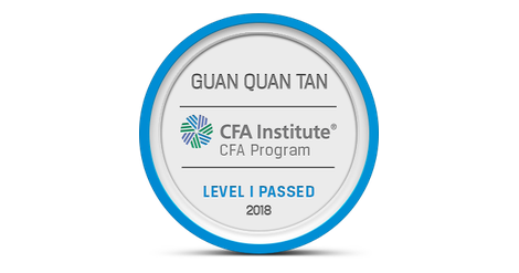 The owner of this badge has passed Level I of the CFA Program. By passing all three of the CFA Program exams and gaining relevant industry experience, candidates demonstrate their mastery of the ethical, analytical, and decision-making skills most needed in the global investment management profession. The CFA credential is the most respected and recognized investment designation in the world with more than 150,000 charterholders globally.