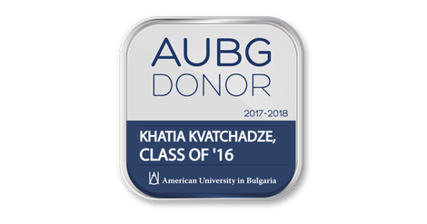 The AUBG Donor badge certifies that its holder has made at least one contribution to AUBG in the period, July 1, 2017- June 30, 2018.