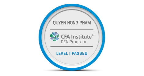 The owner of this badge has passed Level I of the CFA Program. By passing all three of the CFA Program exams and gaining relevant industry experience, candidates demonstrate their mastery of the ethical, analytical, and decision-making skills most needed in the global investment management profession. The CFA credential is the most respected and recognized investment designation in the world with more than 150,000 charterholders globally.