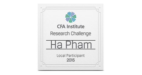The CFA Institute Research Challenge is an annual global competition that provides university students with hands-on mentoring and intensive training in financial analysis. Students gain real-world experience as they assume the role of a research analyst and are tested on their ability to value a stock, write an initiation-of-coverage report, and present their recommendations.