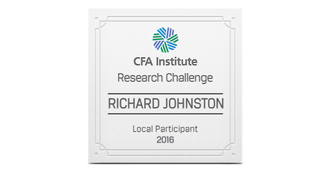 The CFA Institute Research Challenge is an annual global competition that provides university students with hands-on mentoring and intensive training in financial analysis. Students gain real-world experience as they assume the role of a research analyst and are tested on their ability to value a stock, write an initiation-of-coverage report, and present their recommendations.