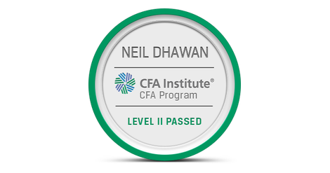 The owner of this badge has passed Level II of the CFA Program. By passing all three of the CFA Program exams and gaining relevant industry experience, candidates demonstrate their mastery of the ethical, analytical, and decision-making skills most needed in the global investment management profession. The CFA credential is the most respected and recognized investment designation in the world with more than 150,000 charterholders globally.