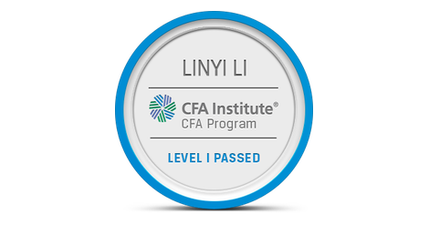The owner of this badge has passed Level I of the CFA Program. By passing all three of the CFA Program exams and gaining relevant industry experience, candidates demonstrate their mastery of the ethical, analytical, and decision-making skills most needed in the global investment management profession. The CFA credential is the most respected and recognized investment designation in the world with more than 150,000 charterholders globally.
