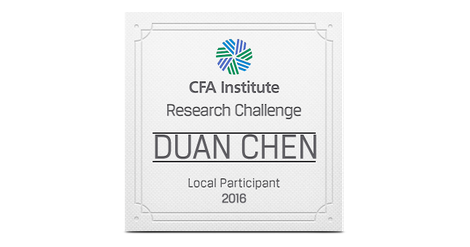 The CFA Institute Research Challenge is an annual global competition that provides university students with hands-on mentoring and intensive training in financial analysis. Students gain real-world experience as they assume the role of a research analyst and are tested on their ability to value a stock, write an initiation-of-coverage report, and present their recommendations.