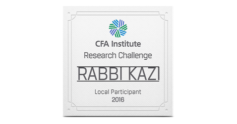 The CFA Institute Research Challenge is an annual global competition that provides university students with hands-on mentoring and intensive training in financial analysis. Students gain real-world experience as they assume the role of a research analyst and are tested on their ability to value a stock, write an initiation-of-coverage report, and present their recommendations.