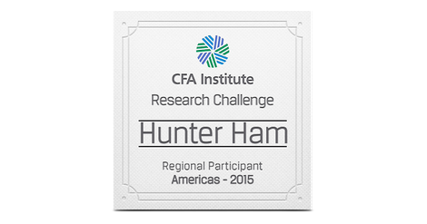 The CFA Institute Research Challenge is an annual global competition that provides university students with hands-on mentoring and intensive training in financial analysis. Students gain real-world experience as they assume the role of a research analyst and are tested on their ability to value a stock, write an initiation-of-coverage report, and present their recommendations.