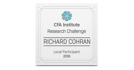 The CFA Institute Research Challenge is an annual global competition that provides university students with hands-on mentoring and intensive training in financial analysis. Students gain real-world experience as they assume the role of a research analyst and are tested on their ability to value a stock, write an initiation-of-coverage report, and present their recommendations.