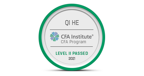 The owner of this badge has passed Level II of the CFA Program. By passing all three of the CFA Program exams and gaining relevant industry experience, candidates demonstrate their mastery of the ethical, analytical, and decision-making skills most needed in the global investment management profession. The CFA credential is the most respected and recognized investment designation in the world with more than 150,000 charterholders globally.