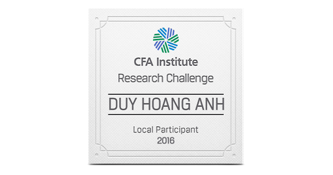 The CFA Institute Research Challenge is an annual global competition that provides university students with hands-on mentoring and intensive training in financial analysis. Students gain real-world experience as they assume the role of a research analyst and are tested on their ability to value a stock, write an initiation-of-coverage report, and present their recommendations.