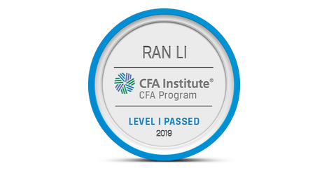 The owner of this badge has passed Level I of the CFA Program. By passing all three of the CFA Program exams and gaining relevant industry experience, candidates demonstrate their mastery of the ethical, analytical, and decision-making skills most needed in the global investment management profession. The CFA credential is the most respected and recognized investment designation in the world with more than 150,000 charterholders globally.