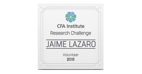 The CFA Institute Research Challenge is an annual global competition that provides university students with hands-on mentoring and intensive training in financial analysis. Students gain real-world experience as they assume the role of a research analyst and are tested on their ability to value a stock, write an initiation-of-coverage report, and present their recommendations.