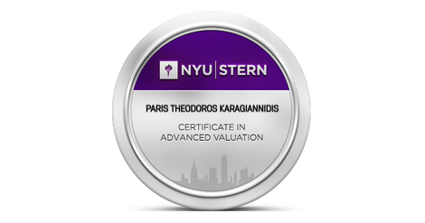 The NYU Stern Certificate in Valuation teaches students how to understand and apply the core fundamentals of valuation whether it’s preparing for an imminent merger or acquisition, or marveling over the latest dollar figure attached to a tech wunderkind. The Valuation course unfolds over 15 weeks, with two new topics released each week. Roughly every other week, Professor Damodaran will hold a live online Q&A session for all participants in the course. Students will complete three quizzes, a final valuation project, and a final exam. Successful completion of the course results in an NYU Stern Certificate in Advanced Valuation.