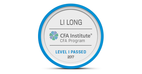 The owner of this badge has passed Level I of the CFA Program. By passing all three of the CFA Program exams and gaining relevant industry experience, candidates demonstrate their mastery of the ethical, analytical, and decision-making skills most needed in the global investment management profession. The CFA credential is the most respected and recognized investment designation in the world with more than 150,000 charterholders globally.