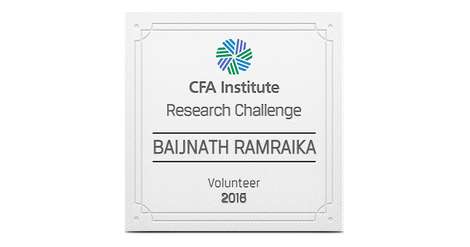 The CFA Institute Research Challenge is an annual global competition that provides university students with hands-on mentoring and intensive training in financial analysis. Students gain real-world experience as they assume the role of a research analyst and are tested on their ability to value a stock, write an initiation-of-coverage report, and present their recommendations.