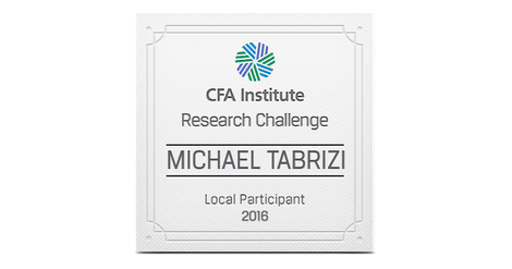 The CFA Institute Research Challenge is an annual global competition that provides university students with hands-on mentoring and intensive training in financial analysis. Students gain real-world experience as they assume the role of a research analyst and are tested on their ability to value a stock, write an initiation-of-coverage report, and present their recommendations.