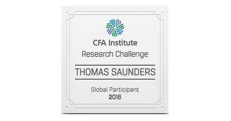 The CFA Institute Research Challenge is an annual global competition that provides university students with hands-on mentoring and intensive training in financial analysis. Students gain real-world experience as they assume the role of a research analyst and are tested on their ability to value a stock, write an initiation-of-coverage report, and present their recommendations.