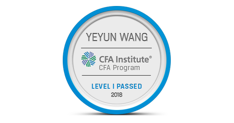 The owner of this badge has passed Level I of the CFA Program. By passing all three of the CFA Program exams and gaining relevant industry experience, candidates demonstrate their mastery of the ethical, analytical, and decision-making skills most needed in the global investment management profession. The CFA credential is the most respected and recognized investment designation in the world with more than 150,000 charterholders globally.