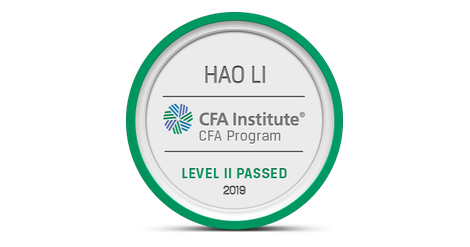 The owner of this badge has passed Level II of the CFA Program. By passing all three of the CFA Program exams and gaining relevant industry experience, candidates demonstrate their mastery of the ethical, analytical, and decision-making skills most needed in the global investment management profession. The CFA credential is the most respected and recognized investment designation in the world with more than 150,000 charterholders globally.