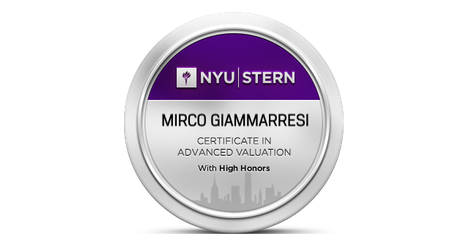 The NYU Stern Certificate in Valuation teaches students how to understand and apply the core fundamentals of valuation whether it’s preparing for an imminent merger or acquisition, or marveling over the latest dollar figure attached to a tech wunderkind. The Valuation course unfolds over 15 weeks, with two new topics released each week. Roughly every other week, Professor Damodaran will hold a live online Q&A session for all participants in the course. Students will complete three quizzes, a final valuation project, and a final exam. Successful completion of the course results in an NYU Stern Certificate in Advanced Valuation.