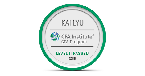 The owner of this badge has passed Level II of the CFA Program. By passing all three of the CFA Program exams and gaining relevant industry experience, candidates demonstrate their mastery of the ethical, analytical, and decision-making skills most needed in the global investment management profession. The CFA credential is the most respected and recognized investment designation in the world with more than 150,000 charterholders globally.