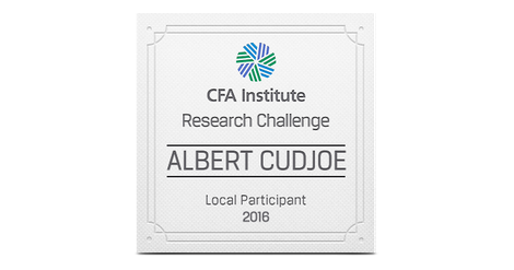 The CFA Institute Research Challenge is an annual global competition that provides university students with hands-on mentoring and intensive training in financial analysis. Students gain real-world experience as they assume the role of a research analyst and are tested on their ability to value a stock, write an initiation-of-coverage report, and present their recommendations.
